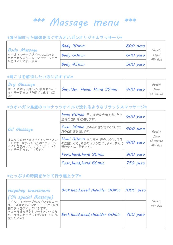 <料金>1class 450ペソ/ 2回目以降は400ペソ